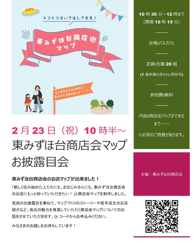 【東みずほ台商店会マップお披露目会】開催のお知らせ~トコトコ歩いて楽しさ発見!東みずほ台商店街マップ~(2024年2月23日(金・祝)10時半〜)